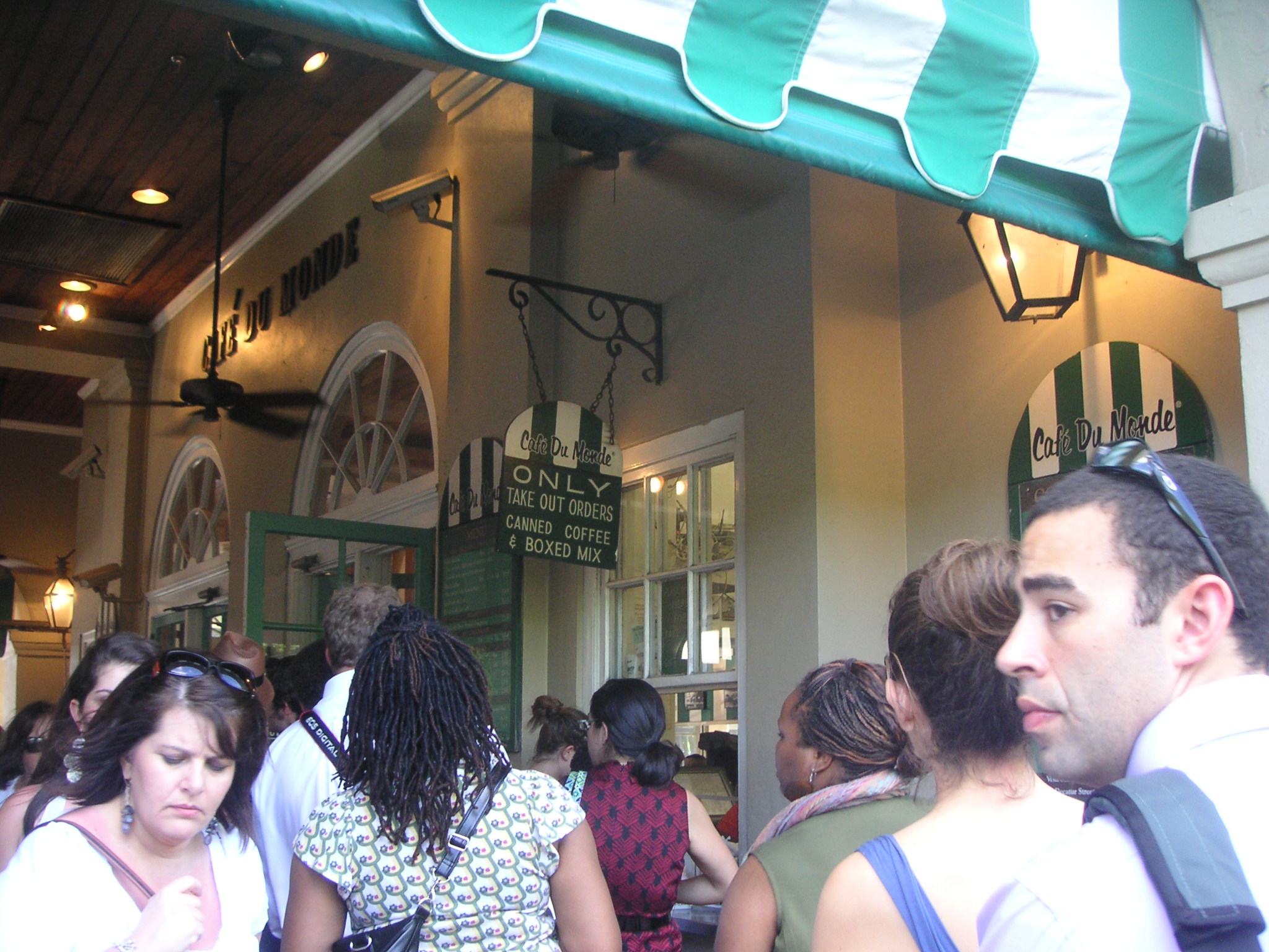 Finally seeing the end of a VERY long line at our favorite, Cafe du Monde!
