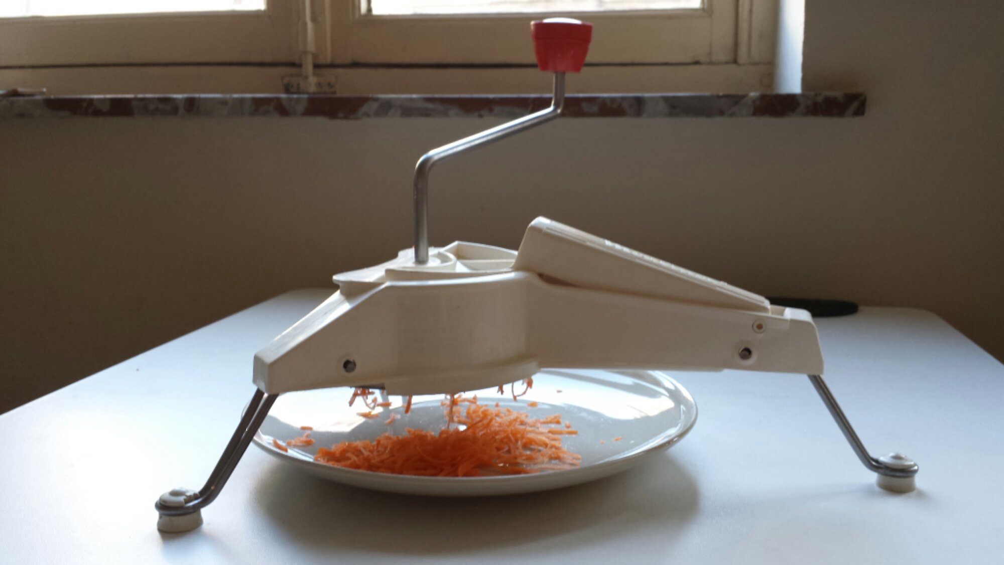 Then, you figure out how in the world you are going to Julienne them. Oh, that’s right! I remember. My flatmate also has this LOVELY contraption: