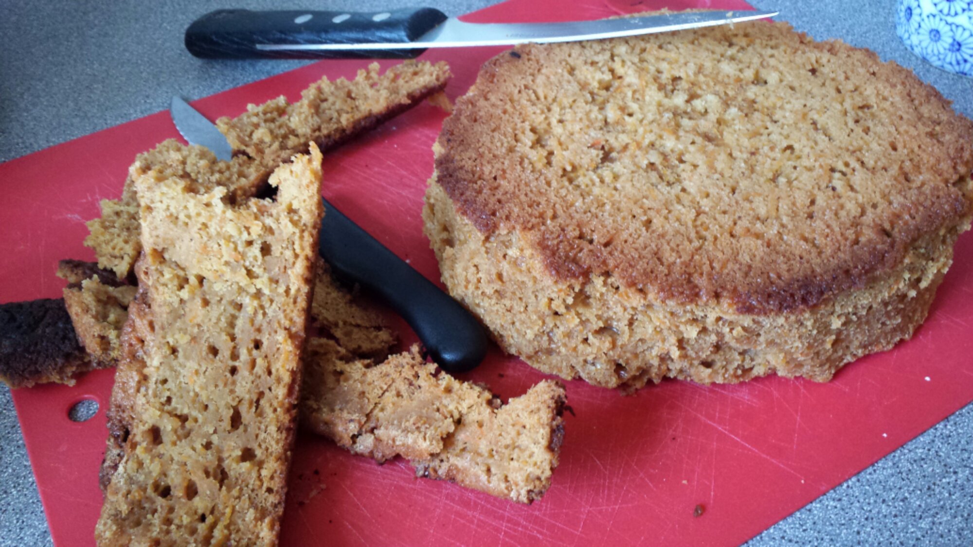 So, here’s where it got special. Basically, when I took the cake out, there were a lot of … dark spots. Where the cake cooked unevenly and I needed to, well, cut off the “crunchy” parts. Quite sad when you think about it. Such a waste.